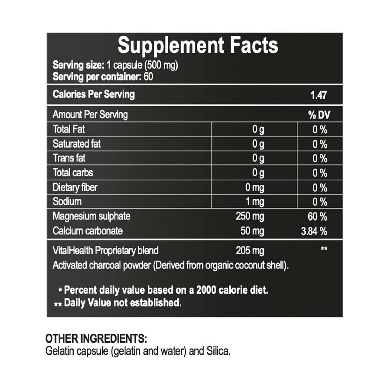 Magnesio, Lisina, Calcio, Carbón Activado.